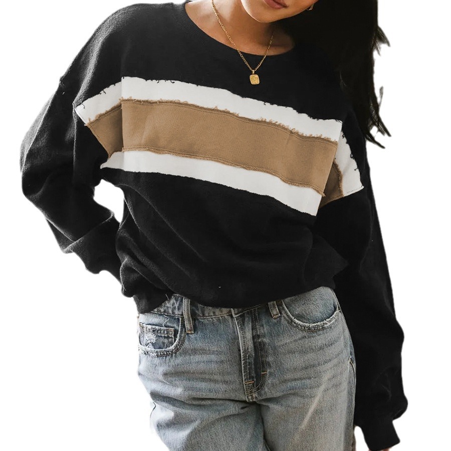 Loose long-sleeved contrast top design trendy warm season sweatshirt pullover