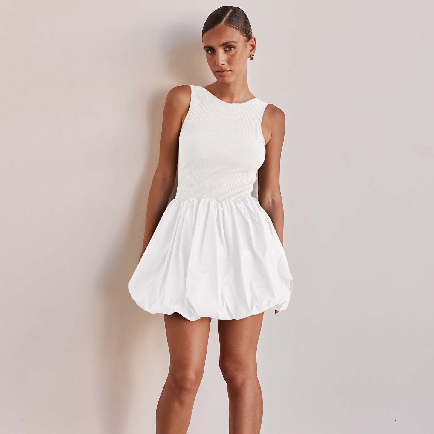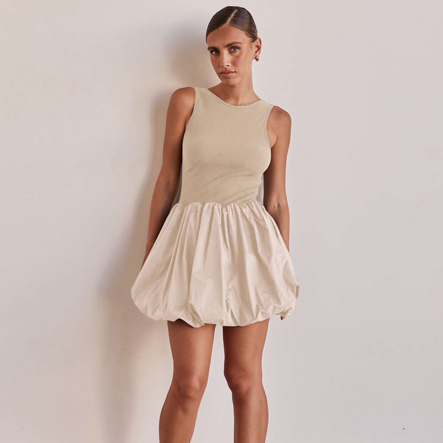 Women’s sleeveless pleated flower bud skirt with backless short dress