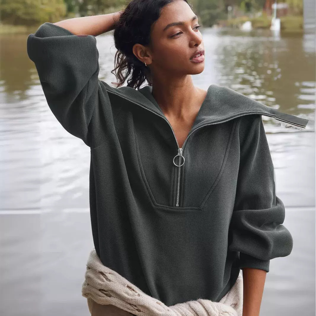 Be the first to review “Autumn personality versatile contrasting color splicing off shoulders fashionable casual loose striped terry sweatshirt” Cancel reply